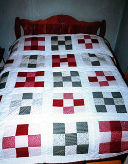 Sewing was another skillful activity. She had a sewing machine and a variety of sewing aid items. Adele did outstanding work on needlepoint, cross stitiching and quilting. Shown is one of many bed quilts made by her.